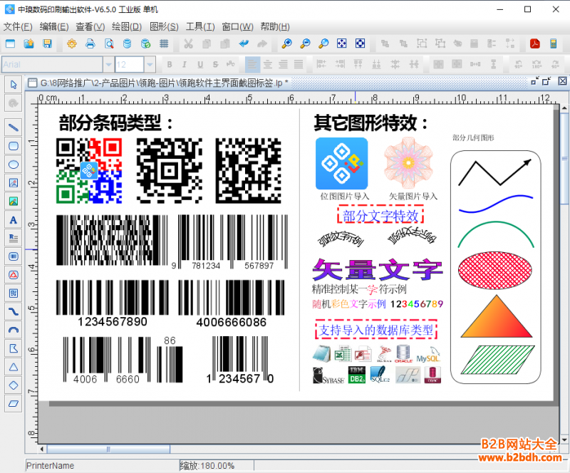 点击软件左侧的“绘制普通文本”按钮,在矩形框中绘制一个普通文本,双击绘制的普通文本,在图形属性-数据源中点击数据对象下面的“编辑”按钮,在打开的窗口中选择“序列生成”数据类型,开始字符串设置为0,软件中就会自动生成1,2,3,4……流水号。
