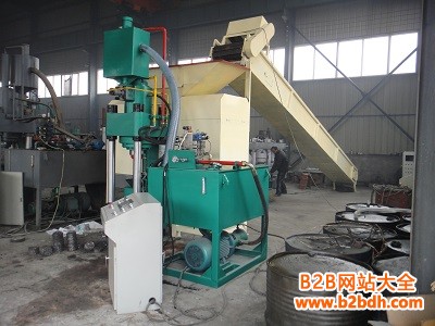 因钢屑大部分比较长,多不条状或是团状,造成无法下料,即使能下料也因比较蓬松,使其无法边续生产,故需加装钢屑粉碎设备,因钢屑材料本身流动性差,造成其送料机构的特殊性,大大区分与其他金属屑压块机的送料机构,送料机构为螺旋送料,钢屑里大部分还含有切削液,钢屑压块机还含有切削液收集装置,我公司研制的整条生产线轻松完也了上述问题,是切削压块机的首选产品。